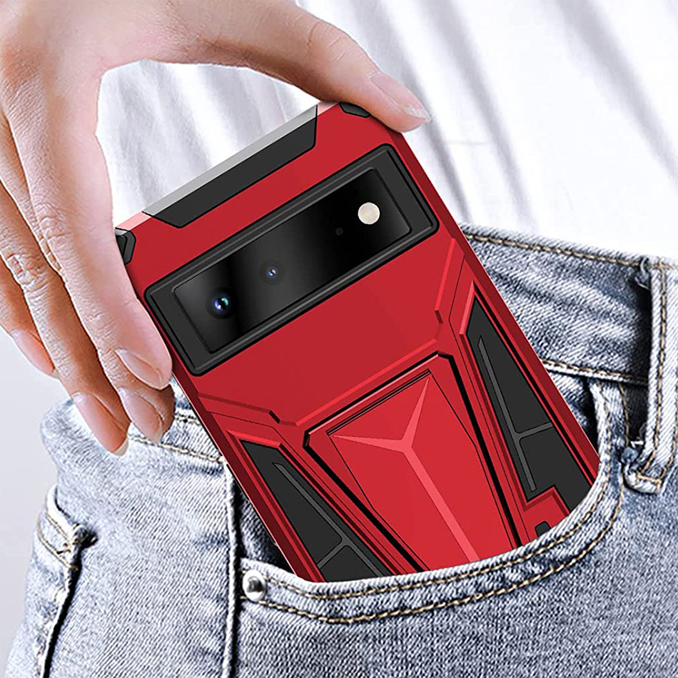 The Slim Shield Tough Case for Google Pixel 6 is a lightweight dual layer cover with pull-out kickstand offering shockproof protection. Available in Red.