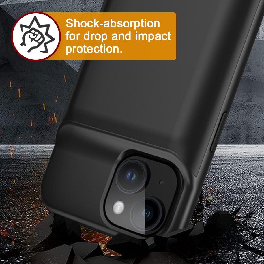 The 7000mAh Battery Charger Case for Apple iPhone 15 is an all-in-one charging solution increasing battery life and the operating time while offering shockproof protection.