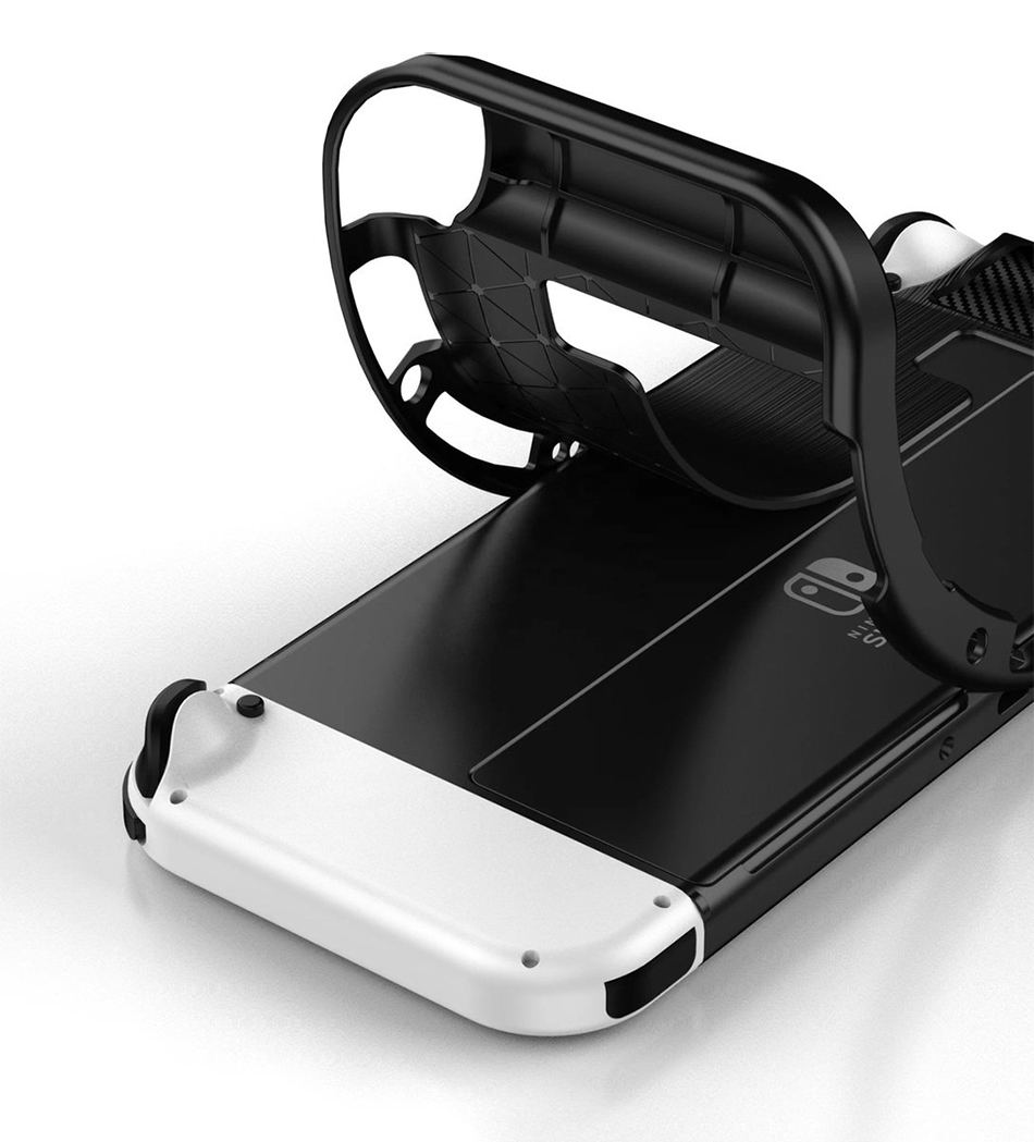 The Flexi Slim Carbon Fibre Case for Nintendo Switch OLED features an ultra-thin design with smooth brushed surface, carbon fibre accents and impact protection for accidental knocks and drops. Available in Black.