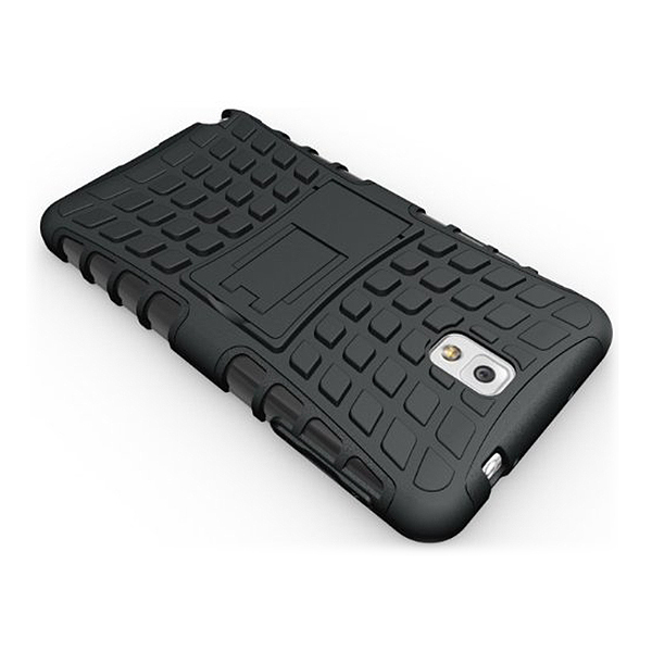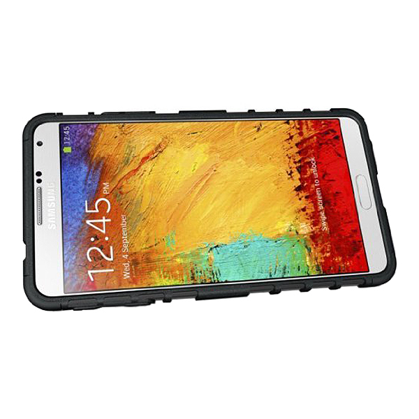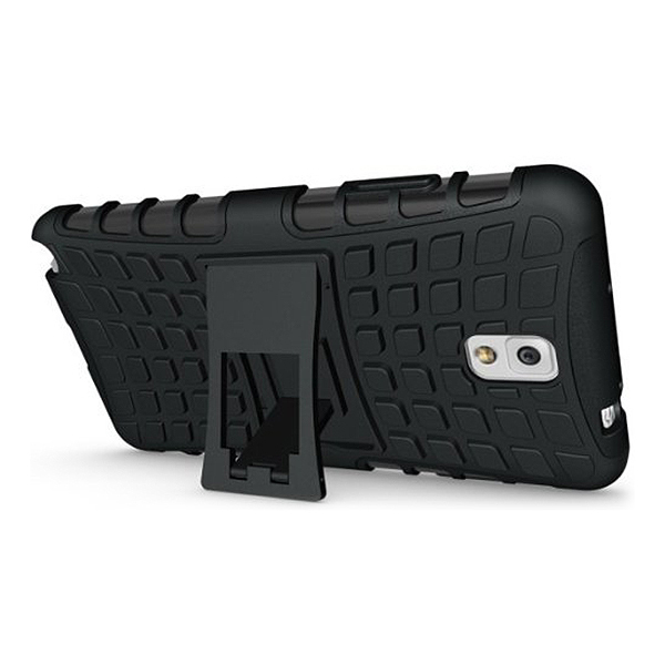 The Protective Rugged Tough Case offers your Samsung Galaxy Note 3 full protection featuring shockproof dual layers, padding and kickstand. Available in Black.