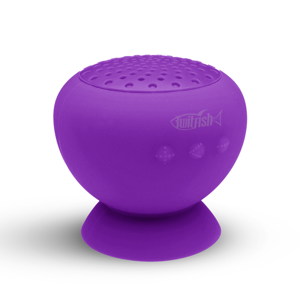 The TwitFish Stick 'n' Play Bluetooth Speaker features an innovative suction grip that sticks to the speaker on almost any flat surface. Available in Purple.